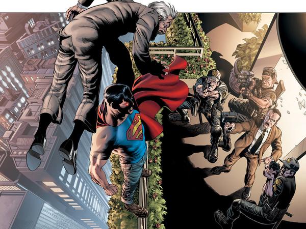 Es gab eine Zeit, als ich „Identity Crisis“ zeichnete, da fand ich, ich wurde den Figuren nicht gerecht. Aber ich meine Defizite motivieren mich. Ich denke immer, ich kann es noch besser hinkriegen – daher ist die größte Herausforderung mein eigenes Ideal zu erreichen und so gut zu arbeiten wie möglich. Und was wir im Fall der neuen Superman-Geschichten in „Action Comics“ Nummer 1 versucht haben, ist so nahe wie möglich an die Originale von Joe Shuster und Jerry Siegel heranzukommen. Ich glaube, gerade in den ersten vier Heften haben wir das im Zusammenspiel von Autor und Zeichner ganz gut hinbekommen.