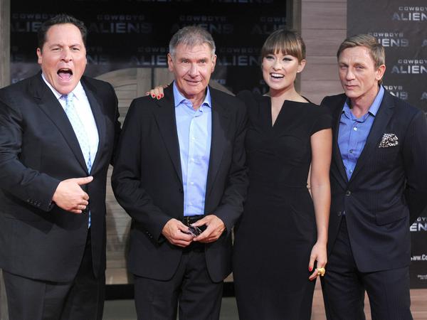 Ein langer Tag der Interviews in wechselnden Suiten des Adlon lag hinter den Vieren, und in allen Gesprächen dürfte es um den seltsamen Genre-Mix gegangen sein, den sich der Comic-Autor Scott Mitchell Rosenberg für seine gleichbetitelte Graphic Novel ausgedacht hatte und der nun, unter anderen durch Steven Spielberg als ausführendem Produzenten, fürs Kino adaptiert wurde: Ein Fremder (Daniel Craig), der sich im New Mexico des Jahres 1875 in ein gottverlassenes Kaff namens Absolution verirrt und seine Vergangenheit komplett vergessen hat, ein despotischer Viehbaron (Harrison Ford), der mit ihm eine ziemlich hohe Rechnung offen hat, eine rätselhafte, über die Vergangenheit des Fremden irgendwie informierte Schönheit (Olivia Wilde) – und plötzlich aus dem Nichts auftauchende Kampfmaschinen mit eklig-glitschigen Aliens, die technisch überlegen, aber gottlob nicht unverwundbar sind.