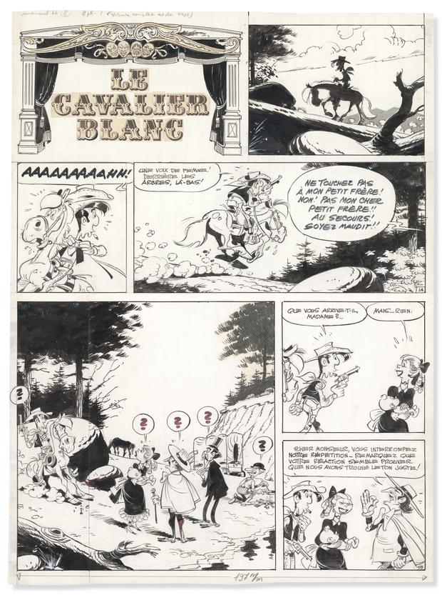 Christie's versteigerte am Freitag erstmals Originale aus Lucky-Luke-Comics, eine „Weltpremiere“ nach Angaben des Auktionshauses. Die 50 Originalseiten des belgischen Zeichners Morris erzielten insgesamt knapp 2,2 Millionen Euro. Die meisten Einzelseiten wechselten für 60 bis 70.000 Euro den Besitzer.
