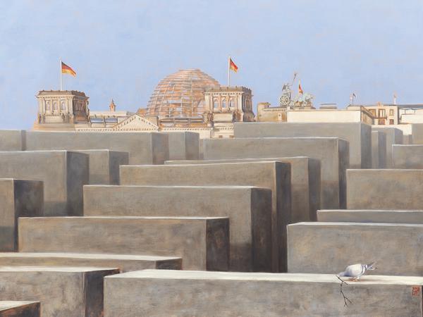 SOOKI studierte Malerei an der Universität der Künste Berlin, ist aber auch literarisch aktiv. In Korea erhielt sie für ihre Lyrik mehrere Preise. In ihren Aquarellen und Gemälden entfaltet die Künstlerin eine verhaltene, in sich ruhende Poesie. Hier sind Himmel und Erde eins; in dezenten Farben gehen sie ineinander über wie in „Ausblick auf die Kongresshalle“ (3500 Euro). Auch bei ihr der Stilbruch zwischen „Mohnblumen im Mai“ und den Kohlezeichnungen „Neokubistische Rose“ I und II (je 3000 Euro).
