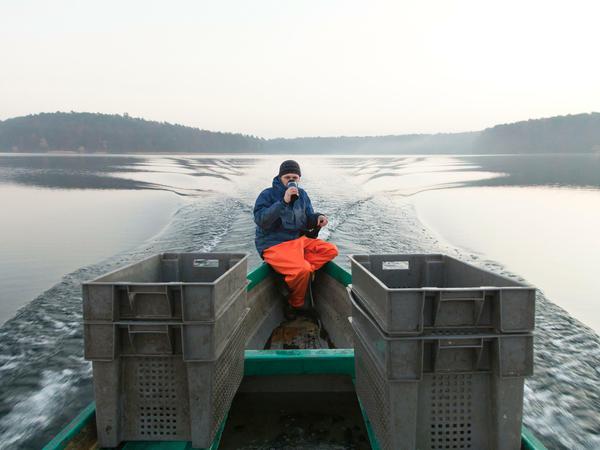 Am liebsten fährt der Fischer „in aller Frühe“ raus auf den See, mit einer Kanne Kaffee, wenn der Himmel erst in lila, dann tiefrot und schließlich goldgelb leuchtet und der erste Rote Milan das Wasser im Gleitflug nach Beute absucht. Bis zu zehn Meter in der Tiefe sieht er den grünen Pflanzenteppich, es sind seltene Armleuchteralgen, die nur in sauberen Gewässern leben. Dieser Reinheit des Wassers verdankt er seine „Brotfische“ – den Hecht, aber vor allem die Maräne, ein Schwarmfisch, der tiefe, klare Gewässer braucht. Böttchers Stellnetze reichen deshalb bis zu 30 Meter hinab.