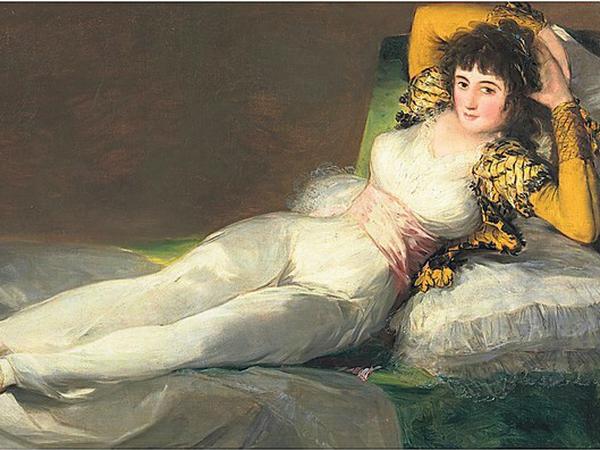 Die einfach „Goya“ betitelte Retrospektive ist eine Achterbahnfahrt – auf Glanz folgt Gewalt, auf sensible Freundesporträts die Fratzen des Kannibalismus, auf feine Damen aufgetürmte Kadaver. Geworben wird für die Schau mit der berühmten „Maja“, allerdings der bekleideten. Ihr Pendant, die auf dem gleichen Kanapee ausgestreckte nackte Schönheit, blieb im Prado zurück. Entliehen wird immer nur eine.