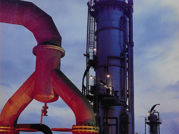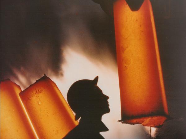 Klein und unscheinbar wirkt nur der Mensch. Er steht vor dem Schaltkasten, Klemmbrett im Arm, Sicherheitshelm auf dem Kopf. Um ihn legt sich die gigantomanische Struktur der Stahlschächte, Mauern und Apparate. Ein Wesen überformt von der vulgären Allpräsenz der Maschine.