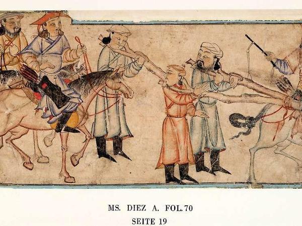 An Selbstbewusstsein hat es dem Universalgelehrten und Diplomaten Heinrich Friedrich Diez (1751-1817) nicht gemangelt. Ein von ihm in Auftrag gegebenes Porträt zeigt den preußischen Gesandten in Konstantinopel mit skeptischem Blick. Zu sehen ist es in der kleinen, aber feinen Ausstellung „Meisterwerke aus dem Serail. Malereien aus den Klebealben des Heinrich Friedrich von Diez“ im Museum für Islamische Kunst. Diese vorwiegend in Alben gesammelten Miniaturmalereien stammen aus dem Iran des 14. und 15. Jahrhunderts und werden nun erstmals in einer eigenen Ausstellung gezeigt. Das Konvolut an erstklassigen Malereien, Skizzen, Handschriften und Büchern gehört zu den bedeutenden Sammlungen der Orientabteilung der Staatsbibliothek Preußischer Kulturbesitz und ist in dieser Qualität nur noch in der Bibliothek des Topkapi Serail in Istanbul zu finden.