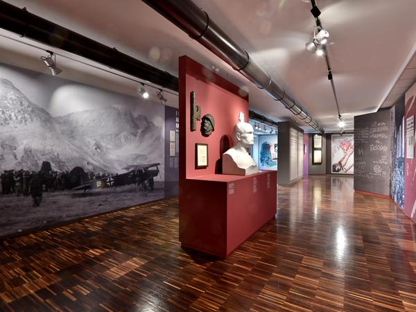 Manches, doch längst nicht alles erfährt man davon im Museum nun in historischen Fotos und Filmausschnitten, in Plakaten, Briefen, Dokumenten sowie im fast 400-seitigen italienisch-englischen Ausstellungskatalog. Gleich zu Beginn grüßt auch eine monumentale Marmorbüste des Duce von 1937. Wie einem antiken Gott fehlt als Tribut der Zeit ein Gesichtsteil, die Nase nämlich ist fast abgeschlagen.