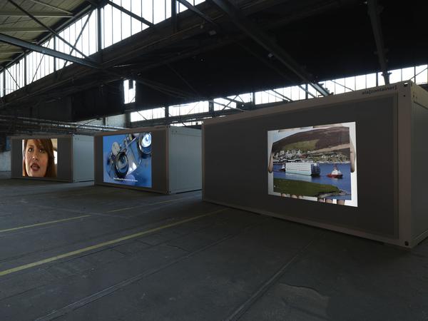 Spannendes bietet auch die große Halle auf dem Gelände. Der Kunstverein n.b.k. zeigt in einer Installation mit Containern und Bühne seine bemerkenswerte Video-Kunstsammlung, die man sonst wegen eines fehlenden Präsentationsortes kaum sieht. Die Vision, die Halle als Kunstzentrum für n.b.k.-Videoforum, Uferhallen-Künstler und vieles mehr zu nutzen, ist temporär bereits Realität. Fakten schaffen – das ist ein weiteres Stichwort, das gut zur Kunst und zu dieser Art Week passt.