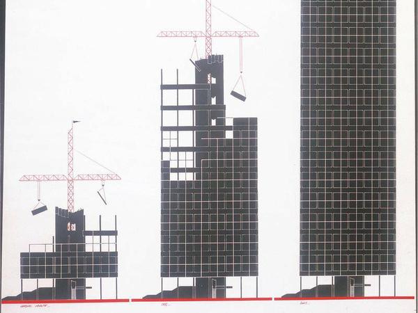 Die in Berlin gezeigten Blätter, zumal die estnischen, lassen an damalige Entwürfe von Zaha Hadid oder Rem Koolhaas denken, die gleichfalls ungebaut blieben. Während die meisten Entwürfe auf keinen konkreten Ort bezogen sind, zielte der Gemeinschaftsentwurf von Alexej Gutnow und anderen, „Palast des Friedens und der Nationen“, unmittelbar auf das Grundstück des legendären „Palast der Sowjets“ aus Stalinzeiten, dessen Fundamente unter Chruschtschow zum Freibad umgebaut wurden. Brodsky und Ilja Utkin zeigten in „Columbarium habitabile“ von 1986 nichts weniger als das Absterben der Stadt, während Juri Awwakumow – er zeichnete selbst auch – zusammen mit Michail Below 1983 ein wachsendes Friedhofs-Hochhaus imaginierte.