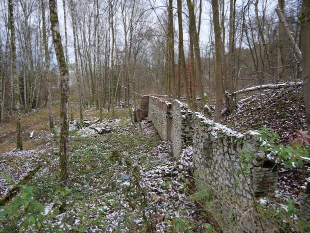 Jetzt hat sich der Wald das ehemalige Lagergelände zurückerobert. Bäume und Büsche haben sich im Mauerwerk der einstigen Gipsfabriken festgesetzt, in denen ein Teil der Häftlinge untergebracht war. Die Ziegelsteinwände von Block 4 sieht man noch zwischen Bäumen aufragen. Eine Informationstafel weist auf ein Unglück hin: eine frisch eingezogene Wand, die die Räume teilen sollte, stürzte plötzlich zusammen und begrub zahlreiche Häftlinge unter sich.