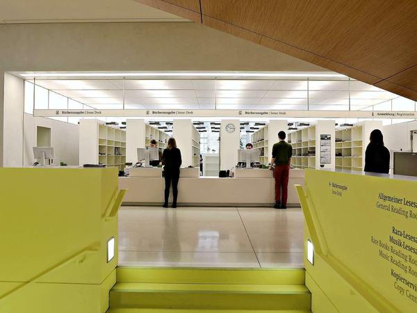 Nun ist sie in erster Linie keine Präsenz-, sondern eine Leihbibliothek. „Nur“ 130 000 der elf Millionen Bücher und Zeitschriften des Gesamtbestandes sind Unter den Linden frei zugänglich und nur vor Ort einzusehen. Der klassische StabiKunde bestellt seine Wunschbücher längst online und holt sie sich für vier Wochen nach Hause. Nur die Wissenschaftler, die beständig weitere Quellen erschließen, die sich regelrecht durch die Bestände wühlen, lassen sich für längere Zeit an reservierten Plätzen nieder oder bauen in ihrem „Carrel“ Handapparate auf. Vor allem für sie wird der Aufwand an Arbeitsplätzen betrieben, vor allem ihnen wird der hohe Raum zum Freiraum des Denkens. Und vielleicht noch für jene Nutzer, die bestellte Bücher erst einmal durchblättern wollen, um zu entscheiden, ob sich die Schlepperei nach Hause lohnt. Bücher sind schwer, im Internetzeitalter ist das den Lesern bewusster denn je.