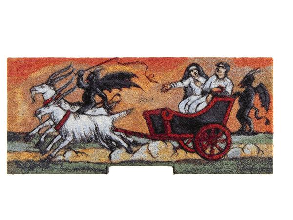 Eine gute Idee, deren geometrische Wirkung auch den ornamentalen Charakter der Bienenwaben zitiert. In einem Video kann man sehen, wie eine Künstlerin von heute ein Bienenstockstirnbrettchen bemalt. Die Tradition lebt. „Queer Bee“ heißt ein mit einer regenbogenbunten Biene geschmücktes Exemplar, das von 2022 statt von 1880 stammt.
