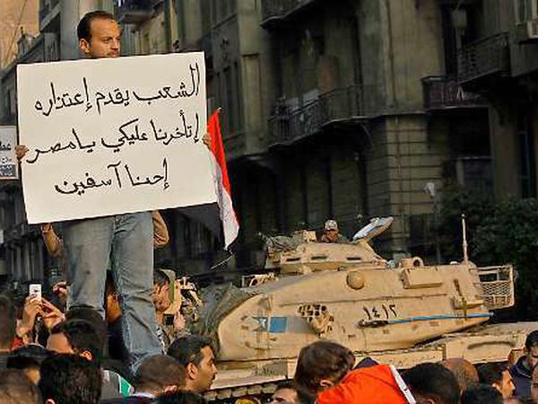 Mona Shahien ist stolz auf ihre Aktivisten: „Der ist jetzt im Parlament, sie arbeitet in der Frauenunion mit, der hat viel gelitten.“ Beshoy Fayez wiederum hat auf sein Transparent geschrieben: „Ich möchte, dass jeder seine Fähigkeiten frei entfalten kann“. Seine Momentaufnahmen vom Frühjahr sind wunderbar, sie könnten zu Ikonen des Aufstands werden: der Salafist, der mit Soldaten auf dem Panzer betet. Aber auch das Foto von den prügelnden Polizisten, die bei genauer Betrachtung nur Polizeihelme und Schilde tragen, aber zivil gekleidet sind.