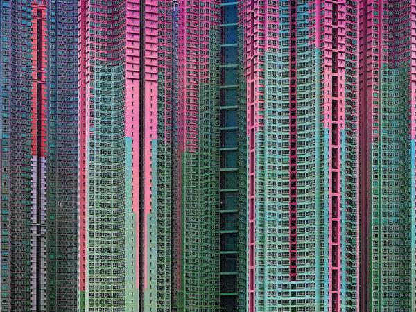 Und natürlich nehmen zwei berühmte Serien des 1954 in München geborenen, in Kalifornien aufgewachsenen und an der Folkwang-Hochschule in Essen beim Fotografie-Doyen Otto Steinert ausgebildete Wolf breiten Raum ein: „Architecture of Density“ (2003-2014), in der er die Fassaden der Hochhäuser in seiner Wahlheimat Hongkong zu Ornamenten und von Piet Mondrians Malerei inspirierten Farbflächen verdichtet.