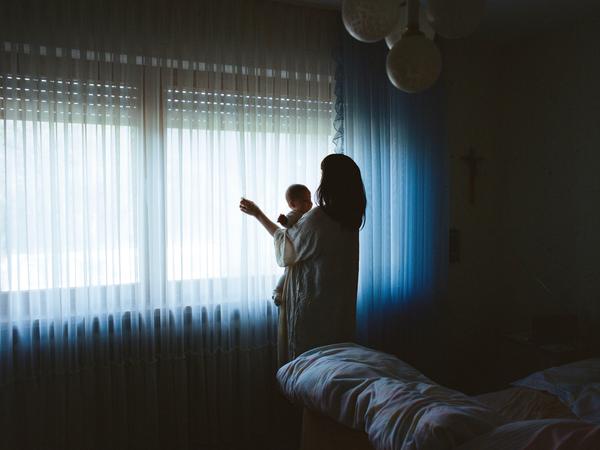 Auch Rabea Edels autofiktionale Fotoserie über das Muttersein mit seinen hellen und oft verschwiegenen dunklen Seiten ist eine untypische, aber gelungene Spielart des Ostkreuz-Dokumentarismus. Edel hat Wohnzimmerszenen mit Mutter und Kind auf Stoff gedruckt und vor die Fenstern aufgehängt. Der Blick auf die Welt draußen, die in Momenten der Depression unendlich weit weg scheint, wird doppelt spürbar.