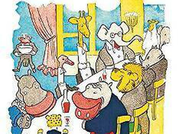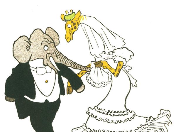 Tusch und Happy End. Und die Moral von der Geschichte? Gibt es nicht, denn der Nonsens der Reime torpediert jede Ernsthaftigkeit. Über ein Wettrennen von Elefant, Nilpferd und Nashorn heißt es: „Die drei mit dicker Haut Begabten / Gemächlich immer weiter trabten.“ Und wenn Elefant und Giraffe einander küssen wollen, wird daraus ein verschlungenes Unterfangen: „Sie nähert ihm den schlanken Hals, / Er ihr den Rüssel ebenfalls.“