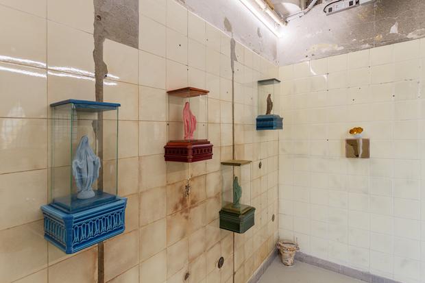 Ausgehend von der Vergangenheit der Örtlichkeit als ehemalige öffentliche Toilette erschafft Lebus mit „Holy Shit“ einen Rundgang durch die Tradition christlicher Ikonografie, der einen Dialog zwischen Intimität und Öffentlichkeit, Sakralem und Alltäglichem eröffnet.