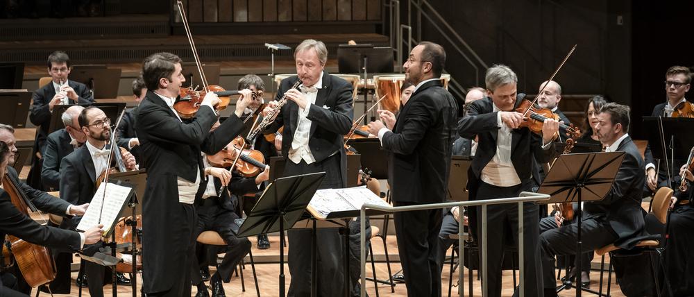 Doch es wird besser, nämlich mit dem selten zu hörenden Concertone C-Dur für zwei Violinen und Orchester, komponiert 1774 in Salzburg, nicht zu verwechseln mit der fünf Jahre später entstandenen Sinfonia concertante. Das Stück ist faszinierendes Zeugnis dafür, wie die Form des barocken Concerto grosso – bei dem eine kleine solistische Gruppe dem Ensemble gegenübersteht – noch in Mozarts Zeit als Echo nachwirkt. Die sehr gesangliche Violine von Noah Bendix-Balgley, Erster Konzertmeister der Philharmoniker, und die dunkler timbrierte Geige von Thomas Timm bekommen noch Gesellschaft von Albrecht Mayers betörender Oboe. Gemeinsam musizieren sie ganz wunderbar, werfen sich in versetzten Einsätzen die Bälle zu – eine echte Konzertierlust, mündend in ein Menuett, für das es kein besseres Wort als „anmutig“ gibt.