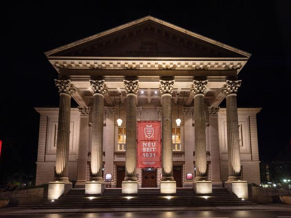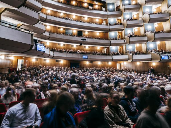 Denn dort sehen sich der aktuelle Intendant Georges Delnon sowie sein Nachfolger, der Regisseur Tobias Kratzer, in der Nachfolge dieser Bürgerbühne. Wer heute im Zuschauerraum von 1957 sitzt, bemerkt vielleicht das verhältnismäßig kleine und unproportionierte Bühnenportal. Das Bühnenhaus blieb nämlich von den Flächenbombardements des Zweiten Weltkriegs verschont, so dass der Architekt Gerhard Weber einen modernen Saal mit knapp 1700 Plätzen an den Altbau klebte, der zu groß ausfiel für das kleine Portal. Vor einigen Jahren wurde die schlichte Ästhetik der fünfziger Jahre zudem mit einer neuen Garderobe und Marmorböden mächtig aufgemöbelt und macht nun einen noch buntscheckigeren Eindruck.