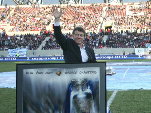 „Rehakles“, wie der Trainer seit dem EM-Sieg der Griechen genannt wird, hatte mit antiquiertem Fußball 2004 überraschend die Kontinentalmeisterschaft gewonnen. „Antiquiert, antik, Griechenland. Ist doch ganz logisch“, sagte Rehhagel. Das Land wolle er „aus einer stabilen Defensive heraus zum Erfolg führen. Wer kämpft, kann verlieren, wer nicht kämpft, hat schon verloren.“ In seiner Antrittsrede vor dem griechischen Parlament bestätigte Rehhagel außerdem Gerüchte, wonach er sämtliche politischen Reden ausschließlich mit Fußball-Metaphern bestreiten will.