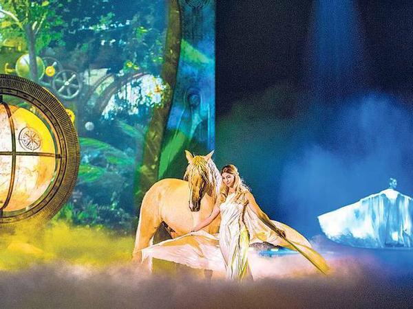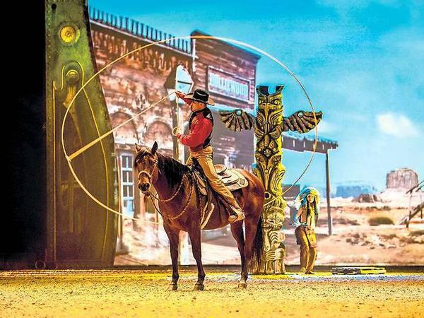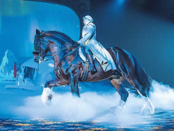 Und auf jedem spielen Pferde die Hauptrolle. Bei den Inuit am Nordpol genauso wie bei den Cowboys im Wilden Westen oder den Teufelskerlen in der Puszta. Gerade noch wildes Galoppieren im Rund, dann trabt eine schöne Prinzessin heran. Romantik pur. Die Zuschauer erleben auch exzellente Dressurkunst: Traversale, Passage, Piafe.