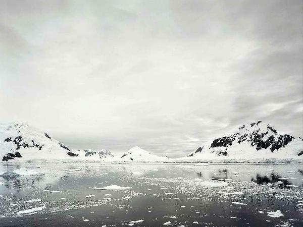 In der Berliner Guardini Galerie wird das historische Bild von zwei monumentalen Werken des Fotografen Hans-Christian Schink gerahmt. Sie stehen in der langen ikonografischen Tradition der Antarktis als Ort von Erhabenheit und Schrecken. Zu sehen sind schneebedeckte schwarze Felsen, davor die vereiste See. Konturen verwischen im diffusen Licht. Die Szenen erinnern an Traumbilder. Der Himmel, der den größten Teil der Aufnahmen einnimmt, besteht vor allem aus Wolken. Es handelt sich um Farbaufnahmen, aber Farben, das sind in der kältesten Region unseres Planeten hauptsächlich Weiß und Grau und alle Abstufungen dazwischen. Eine erstarrte Welt. Ihr Anblick macht frösteln.