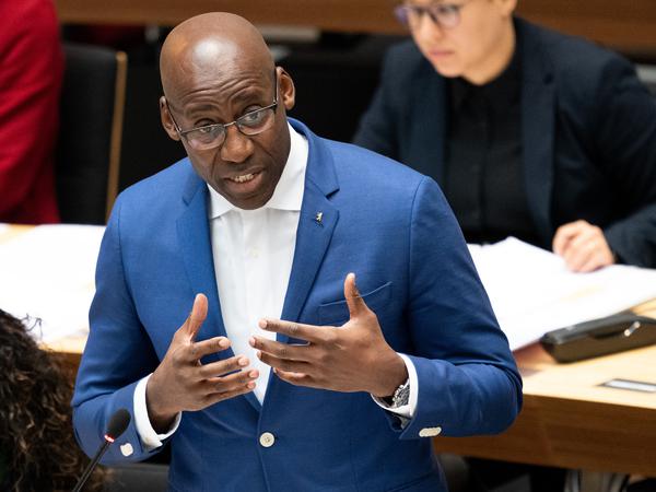 Joe Chialo (CDU), Berliner Senator für Kultur und Gesellschaftlichen Zusammenhalt, spricht während der 56. Plenarsitzung des Berliner Abgeordnetenhauses.