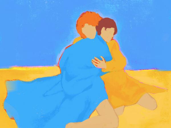 Die Malerin Anna Voda malt ihre Bilder in Öl und mit Acrylfarben. Ihr Arbeiten wurden bereits in verschiedenen Gruppenausstellungen, unter anderem in Tiflis gezeigt, außerdem hat Voda zahlreiche Kooperationen mit Designern und Bekleidungsmarken. Ihre gemalten „Umarmungen“ sind eine Reaktion der Künstlerin auf die ukrainische Einheit und den Mut, den die Ukrainer:innen in diesen schweren Zeiten an den Tag legen. Und die Farben all dieser Gefühle sind nicht nur Gelb und Blau ...