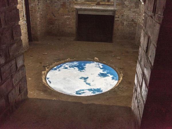 Der Himmel ist so hoch, dass er sich tief im Boden spiegelt. Jedenfalls scheint das beim Betrachten der Videoinstallation von Patricia Detmering so zu sein. Sie hat das Himmelszelt in der ehemaligen Sakristei gewissermaßen im Boden versenkt. Und kann – genau wie der ebenfalls anwesende Luc Wolff – am Mittwoch (12.10., ab 18 Uhr) bei der Saisonabschluss-Sause der Ausstellung auch auf ihre Arbeit angesprochen werden.
