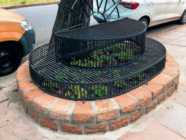 Des Öfteren sieht man handgeschriebene Schilder, auf denen die Hundebesitzer angehalten werden, zu verhindern, dass ihre Lieblinge ihr Geschäft im Blumenbeet verrichten. Nun wurde vor ein paar Wochen der Gehweg saniert und dabei sind diese grotesken Gitter errichtet worden.