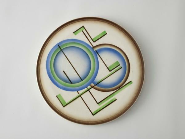 „Spritzdekor“, wie das kostengünstig maschinell hergestellte und mit Hilfe von Schablonen und Pressluftpistolen dekorierte Steingut heißt, schwemmt massenhaft in Proletarierstuben. Knapp zehn Jahre lang. Dann riechen die Nationalsozialisten den Braten und erkennen, dass die expressiven Zacken, psychedelischen Ringe, geometrischen Farbflächen das nachahmen, was die von ihnen als „entartet“ und „kommunistisch“ verfemten Konstruktivisten wie Malewitsch, Mondrian oder El Lissitzky in der Malerei veranstalten.