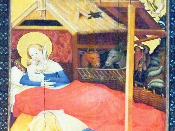 Was heißt schon Stall: Unsereins im westlichen Abendland kennt ja eher die idyllischen Bilder vom trauten, hochheiligen Paar, das Kind mit Mutter und Ziehvater friedlich in der Hütte vereint. Josef hält fürsorglich die Laterne oder kniet vor dem Bett mit Maria samt Baby und pustet liebevoll ins Feuer, damit die Suppe heiß wird. Bei Konrad von Soest auf dem Wildunger Altar verbrennt er sich dabei fast den Bart.