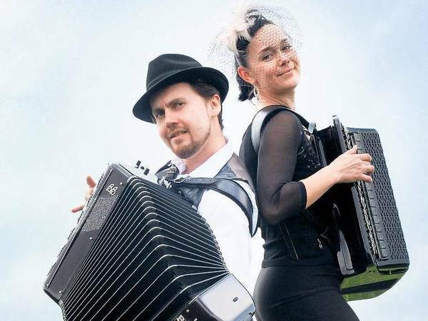 Gaynullin und Lutz sind damit aufgewachsen und haben mit acht, neun Jahren angefangen, Bajan zu spielen. Er hat die Gnessin-Musikakademie in Moskau absolviert, an der Hanns-Eisler-Hochschule in Berlin noch ein Konzertexamen gemacht, 17 internationale Akkordeon- Wettbewerbe gewonnen und in Russland mit Größen wie Anna Netrebko oder dem Cellisten Rostropowitsch gespielt. Sie ist mit ihrer deutschstämmigen Familie 1999 als Spätaussiedlerin nach Lichtenberg gezogen und hat nach ihrem Musikstudium in Bishkek noch eins an der Hanns-Eisler-Hochschule angehängt.