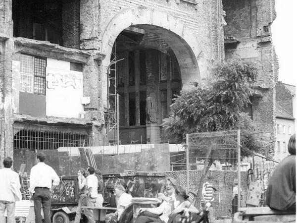 Klaus Tuschen ist ein besonderer Zeitzeuge. Anfang der 1990er Jahre hat er für den Dokumentarfilm Aufgestanden in Ruinen – Projekt Tacheles ein Jahr lang hier gedreht, den Beginn der selbstverwalteten Arbeit in den Freiräumen in Ost-Berlin auf Beta SP dokumentiert. Eine No-Budget-Produktion, die am 12. September im Babylon Mitte ihre Kino-Premiere erlebte. Nach dem Schnitt gab es Querelen zwischen den Machern, später ging die Produktionsfirma pleite. So war Aufgestanden in Ruinen bislang nur bei ein paar privaten Vorführungen zu sehen.