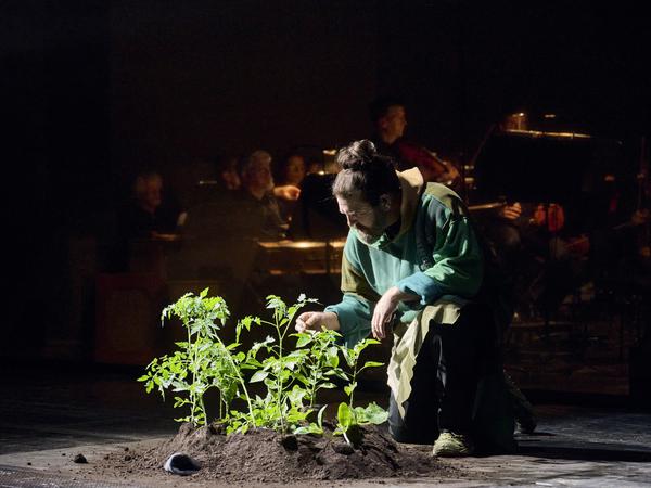 Zuvor erlebt man Gott, gesungen vom Chor, als rätselhaften, durchaus bedrohlichen Schleimpilz-Blob (katholikentagstauglich ist diese Inszenierung nicht). Von seinem Auftritt künden zuvor schon gelbe Häkelseile im Park. Und am Ende ist bei diesem Opern-Event alles irgendwie vernetzt. Erschöpfung, Heimfahrt. Lange geschlafen und vom Gesang der Nachtigall aufgewacht. Oder war’s doch die Lerche?