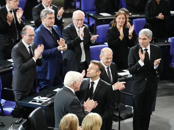 Bei einem Trauerstaatsakt wird der ehemalige Bundestagspräsident Wolfgang Schäuble im Bundestag gewürdigt. Der französische Präsident Emmanuel Macron nennt ihn „eine Säule für Europa“.