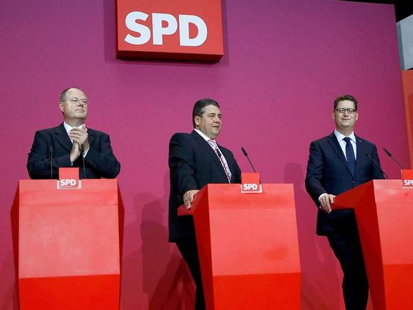 14.00 Uhr: SPD-Parteichef Sigmar Gabriel und Kanzlerkandidat treten gemeinsam vor die Presse. Gabriel gibt bekannt, dass es am Freitag einen Parteikonvent geben wird. Dort wird die Parteibasis zum Gespräch erwartet.