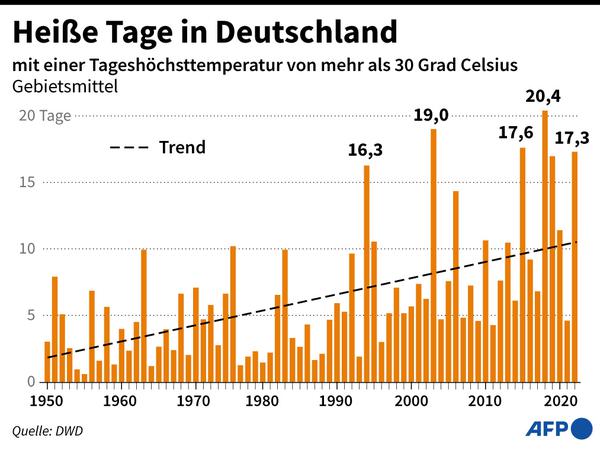 Entscheidend aber sind aus Sicht des Grünen-Politikers auch bauplanerische Maßnahmen, gerade in Städten. Wagner nannte die Entsiegelung öffentlicher Plätze, die Begrünung von Fassaden und Dächern, den Erhalt und die Neuanpflanzung von Bäumen. Es brauche mehr Grün statt „Betonwüste“ in deutschen Städten, betonte er. (AFP)