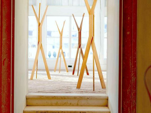 Der Tisch „Arnheim“ überzeugt mit schlanker, dynamischer Silhouette. „T(h)ree“ ist ein praktisches Set aus drei Beistelltischen, die man je nach Bedarf aus- und ineinander schieben kann. Garderobenständer „Coat Check“ sieht aus wie ein Blitz, der gerade am Himmel zuckt.