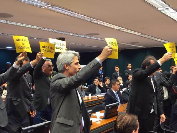 Es reicht um zu begreifen, dass die Regierung in Brasilien die Rechte der indigenen Völker nicht achtet. Das sagt Francinera Soares und deutet auf ihr T-Shirt. „PEC 215 Não“ steht da, „PEC 215 Nein“. Gemeint ist die geplante Änderung der brasilianischen Verfassung. Kommt sie durch, hat demnächst der Kongress mit den einflussreichen Mitgliedern aus Landwirtschaft das letzte Wort bei der Anerkennung indigener Gebiete. Gegenwärtig liegt dies in der Hand der FUNAI, der Behörde für die Angelegenheiten indigener Völker.