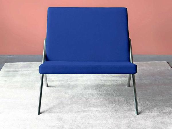 Auch in Sesseln und Sofas findet sich diese klare Formsprache wieder. Die Möbel sind vor allem für halböffentliche Räume wie Wartebereiche oder Lobbys gedacht. Die minimale Polsterung animiert zum aufrechten Sitzen, fürs Lümmeln sind sie nicht gedacht. Allerdings sind bei den neuen Entwürfen auch farbenfrohere Objekte dabei, die man sich auch in privaten Wohnzimmern vorstellen kann. Mehrere Designpreise gewann die von Julian Loehr entworfene Serie „Faber“ aus massivem Eichenholz mit Hocker, Beistelltisch, Bistrotisch und Barhocker. Sie steht unter anderem in einem Designhotel in Malmö. Auffallend ist das charakteristische Untergestell, inspiriert von nordischem Fachwerk.