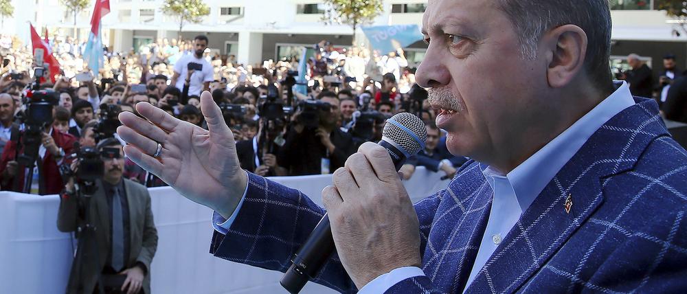 Angesichts der angespannten Beziehungen mit der EU hat der türkische Präsident Recep Tayyip Erdogan am Samstag ein Referendum über den Beitrittsprozess seines Landes ins Spiel gebracht. "Was die (Beitritts-) Verhandlungen anbelangt, könnten wir den Weg eines Referendums nehmen und der Entscheidung folgen, die die Nation trifft", sagte der Präsident bei einem britisch-türkischen Forum in Antalya.