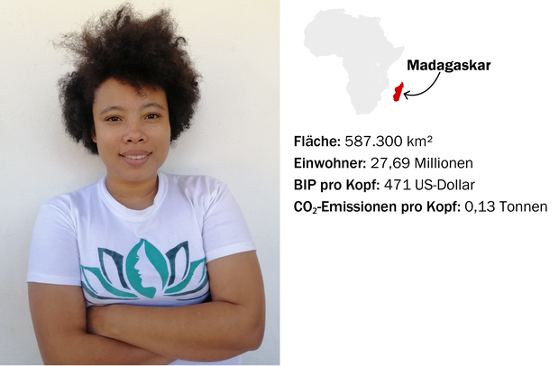 Auch Kolo kann solche Beispiele aus ihrer Heimat nennen. Der Süden Mada­gas­kars befindet sich der­zeit in einer schweren Krise – der ersten welt­weit, die laut den Ver­einten Nationen ein­deutig auf den Klima­wandel zu­rück­zu­führen ist. Dort, wo Kolo als Kind durch Reisfelder tobte, ist es seit Monaten trocken.