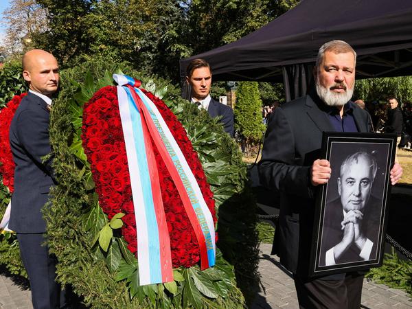 Nach mehreren Stunden wurde Gorbatschows Sarg geschlossen, mit einer russischen Flagge bedeckt und in einer Prozession aus dem Saal getragen. Sie wurde vom Friedensnobelpreisträger Dmitri Muratow angeführt, dem Chefredakteur der von Gorbatschow unterstützten unabhängigen Zeitung „Nowaja Gaseta“.