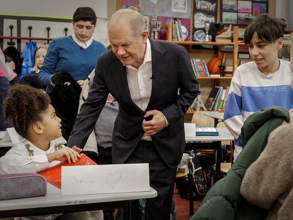 Und die Kandidaten für sich. Olaf ist stolz darauf, dass seine Vorgänger als Kanzler und Kanzlerin nicht so viele Haushaltszahlen gekannt hätten wie er. Friedrich, der viel Geld außerhalb der Politik verdient hat, sagt von Olaf, dass der in der Schule wohl ein Streber gewesen sein wird und er eher ein Chaot. Aber irgendwann muss damit mal Schluss sein, sagt er dann noch, und die Kinder nicken. Sie verstehen sich.