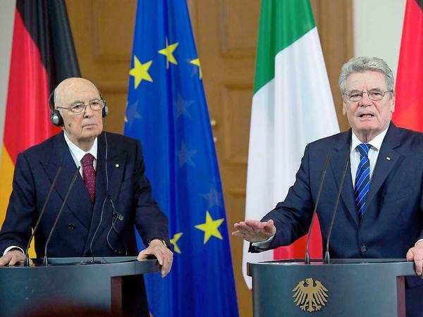 Zu seiner „Willy Brandt Lecture“ an der Humboldt-Universität am Freitag dürfte sich Napolitano in Ort und Zeit genau richtig gefühlt haben. Mitten in der Krise und in der Hauptstadt von Europas größter Volkswirtschaft. Deren politischer Führung er in aller Höflichkeit vorwirft, sie ziehe aus dem Vernunftbekenntnis zu Europa nicht genügend Konsequenzen. Die Kanzlerin – im Redetext des 87-jährigen Staatspräsidenten heißt sie jedes Mal „der Bundeskanzler, Frau Merkel“ – nenne richtigerweise die harten Zahlen und Fakten, dass nämlich selbst das große Deutschland nur ein Prozent der Weltbevölkerung ausmache und folglich nur mit den europäischen Partnern zusammen Gewicht habe. Alles „ernsthaft und wohlbegründet“, man sei da einig, nur: „Wenn es denn stimmt, dass wir alle in einem Boot sitzen und dass auch die deutsche Wirtschaft, die stärkste und wettbewerbsfähigste in Europa, der Rezessionswelle in wichtigen EU-Ländern wie Italien ausgesetzt ist: Dürfte man dann nicht berechtigterweise einen kräftigen Anstoß Deutschlands erwarten, einen Beitrag zu echter, nicht nur angekündigter Erholung von Wachstum und Beschäftigung in Europa?“ Zwischen der Einsicht ins Notwendige und „gewissen Verhaltensweisen“ voller Kleinlichkeit und Nationalegoismus, „sagen wir’s offen“, sei „der Abstand zu groß“.
