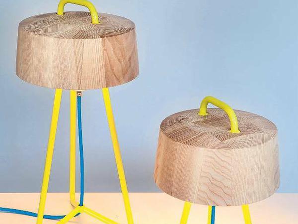 Den Umgang mit dem Material reflektiert auch sein Tisch „In progress“. Jasiewicz nutzte dafür Holz einer über hundert Jahre alten Esche, die im Tatra-Nationalpark gefällt werden musste. Das Spannende an dem Projekt: Das feuchte Holz verändert sich fortwährend. Es schrumpft, bricht und verformt sich, bevor es gänzlich trocknet. Das ergibt überraschende Effekte. Auch seine neueste Idee, die Tischleuchte Lightbuoy, verblüfft. Auf einem knallgelben Metallgestell baumelt ein schlichter runder Holzschirm und spendet behagliches Licht.