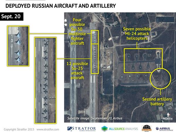 Dagegen hatte Putin in den vergangenen Wochen die Lieferung von Waffen an Assads Regierung verstärkt und zusätzliche Militärberater nach Syrien geschickt. Nach Medienberichten hat Moskau 24 zusätzliche Kampfflugzeuge auf dem Stützpunkt im nordsyrischen Latakia entsandt. Inzwischen sollen dort 28 Kampfflugzeuge und rund 20 Kampf- und Transporthubschrauber sowie Drohnen stationiert sein, berichtet die „Financial Times“. 500 russische Marineinfanteristen sollen sich ebenfalls dort befinden. Laut der russischen Zeitung „Kommersant“ sollen es sogar 1700 Spezialkräfte sein.