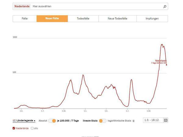 Die Entwicklung der Sieben-Tage-Inzidenz in den Niederlanden.