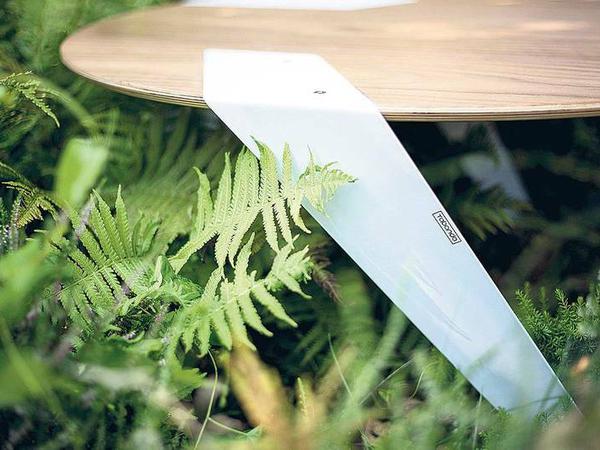 Im Dezember 2009 feierte das Label eine „bescheidene, vorweihnachtliche Premiere“. Freunde und Familie wurden geladen, um die ersten Produkte zu sehen. Vieles davon habe die Zeit auf Probe zwar nicht überstanden. Ein Möbel blieb aber bis heute im Sortiment: der Hocker „Falon“. Seine organische Form, die aus mehreren hintereinander angeordneten Einzelrahmen entsteht, erinnert an ein Akkordeon oder eine Welle – besonders, wenn man mehrere Teile zu einer Bank kombiniert. „Ein bisschen Möbel, ein bisschen Skulptur“, sagt Malinowska. Und eine kleine Demonstration solider handwerklicher Arbeit. Gebaut wird das gute Stück, wie auch Ess- und Couchtische von Tabanda, aus Birkensperrholz. „Ein angenehmes Material mit tollen Eigenschaften.“ Es verziehe sich nicht und lasse sich leicht verarbeiten.