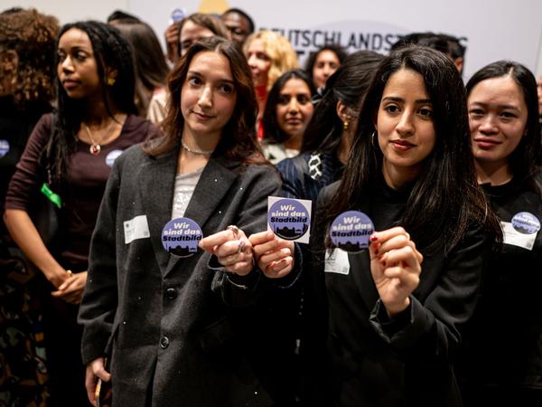 Als Merz in Berlin bei der Verleihung des Talisman-Preises für gesellschaftlichen Zusammenhalt der Deutschlandstiftung Integration die Bühne betrat, gingen rund 30 Stipendiatinnen und Stipendiaten hinaus. Sie trugen Sticker mit der Aufschrift „Wir sind das Stadtbild“ und positionierten sich im Eingangsbereich für ein Gruppenbild. Erst nach der gut 20-minütigen Rede nahmen sie ihre Plätze wieder ein.