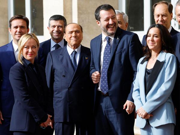 „Wir geben jetzt schon bekannt, dass wir bereit sind, denn wir wollen so schnell wie möglich vorankommen“, erklärte Meloni umringt vom schweigenden Forza-Italia-Gründer Silvio Berlusconi und Lega-Chef Matteo Salvini anschließend. Dem gemeinsamen öffentlichen Auftritt des Rechtsbündnisses ging ein Eklat um putinfreundliche Aussagen Berlusconis und ein Ringen um die Besetzung der Ministerien voraus. (dpa)